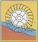 Das Stoßrad nutzt nur die Bewegungsenergie des Wassers (Aktionsprinzip) |