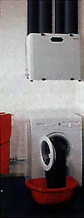 Vom "Zuluft"-Rohrstutzen dieses Geräts führen runde oder rechteckige Kanäle aus verzinktem Stahlblech oder Kunststoff zu den Wohn- und Schlafräumen. Dort strömt die gefilterte und erwärmte Zuluft durch unauffällige Öffnungen in die sogenannte "Zuluftzone". Anschließend gelangt sie in die Räume der "Abluftzone", zu denen Küche, Bad und WC gehören. In einem dieser Räume wird sie dann zentral abgesaugt. Kleine Lüftungsschlitze sorgen dafür, daß die Luft auch bei geschlossenen Türen in der beschriebenen Weise zirkulieren kann.