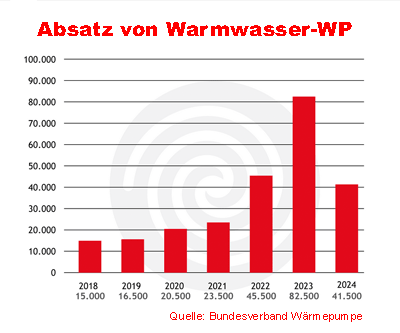Knapp 18 Prozent der im vergangenen Jahr verkauften 234.500 Wärmepumpen dienten nicht der Gebäudeheizung, sondern der Erwärmung von Brauchwasser. |
